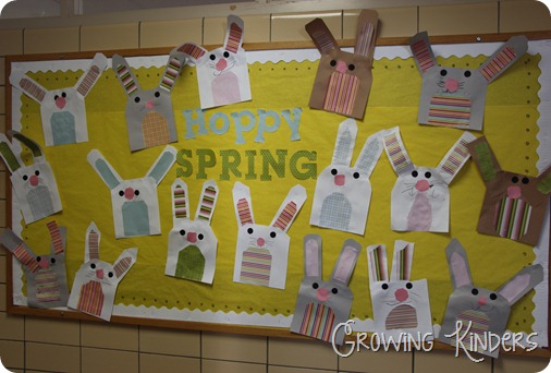 We made these sweet bunnies just before Easter, but I’m only now posting them! :P You could still certainly throw this cutie patootie bulletin board up in no time!